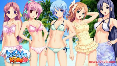 蓝蓝的天空,金黄色的沙子,淡蓝的海水,还有……穿泳装的女生。