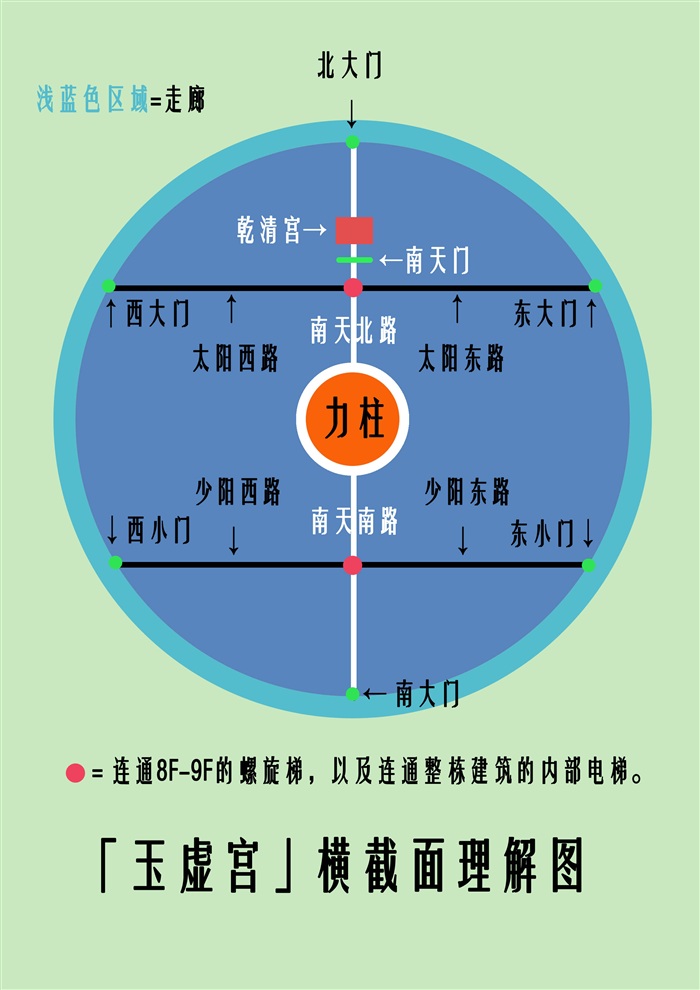 PS;「力柱」是半径50M的圆柱,图中比例尺有误,实际并没有那么大……