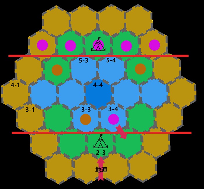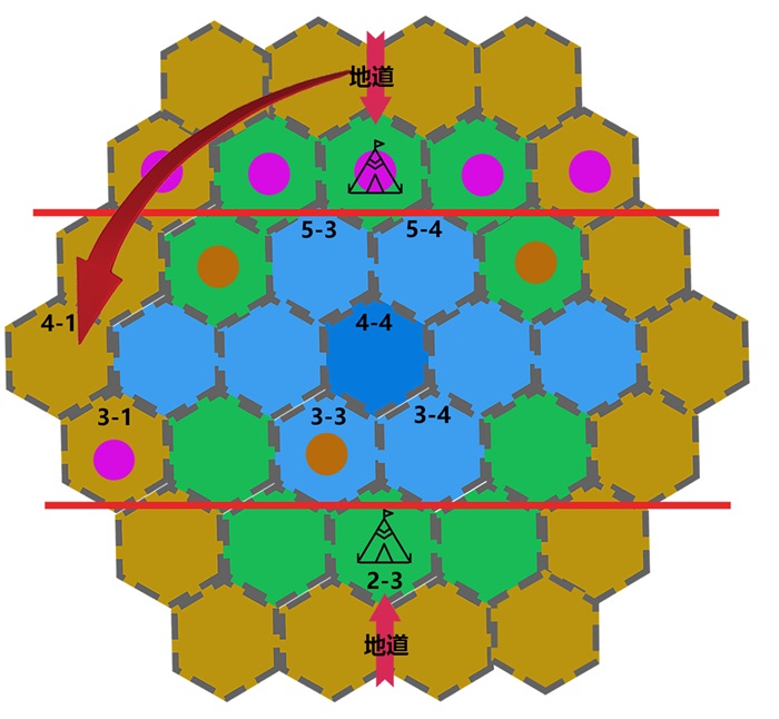 “按小喷菇的排除法来看的话,如果‘我们已经知道了审判之所所有的情报’,审判之所下方应该只有一条从外面前往2-3的地道,能够排除。如果是河流中有什么暗道的话,在黑暗中直接前往3-4,就能够直接一步进入我方的营地获得胜利,前往4-1也并不是最优决策。所以剩下的……”