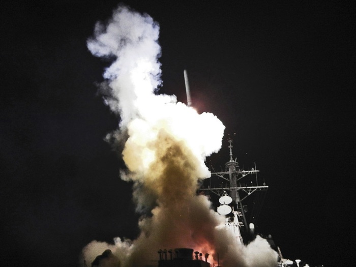 艾伦:“大家一定都知道,仅3月19日一天,美国与英国的军舰与潜艇就发射了上百枚战斧式巡航导弹,袭击了20多处利比亚的防空设施,那么战斧导弹究竟有哪些好处让美国等欧美国家自90代开始逢战必用战斧巡航导弹?”