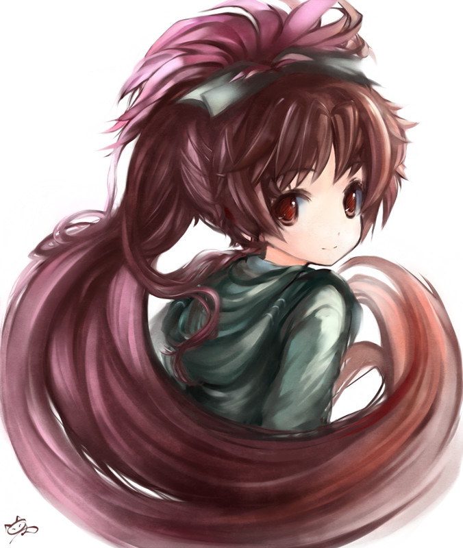 红发红瞳,单马尾。