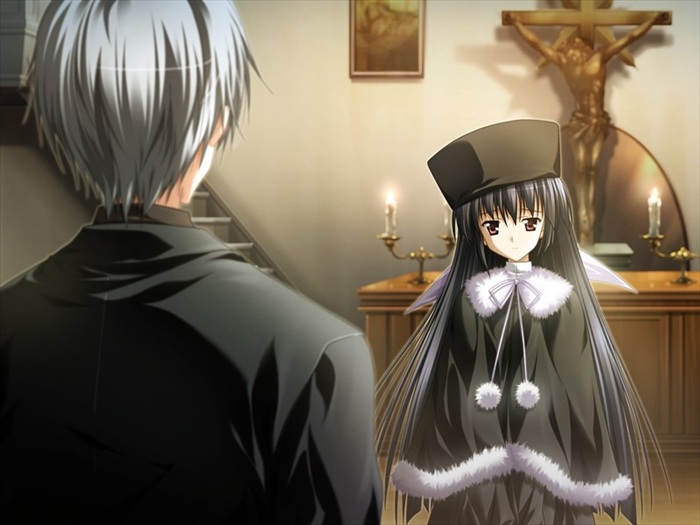 ……我在想谁都会有向神灵许愿的时候,就算不相信一切,但以真实的心情默默祈祷的日子总会来临。人们所寻找着的,人们所追求着的,和回旋的思念一起,构成人与人之间的羁绊,而存在于将来的就是……这是谁的言语,修女服的少女望向远方。