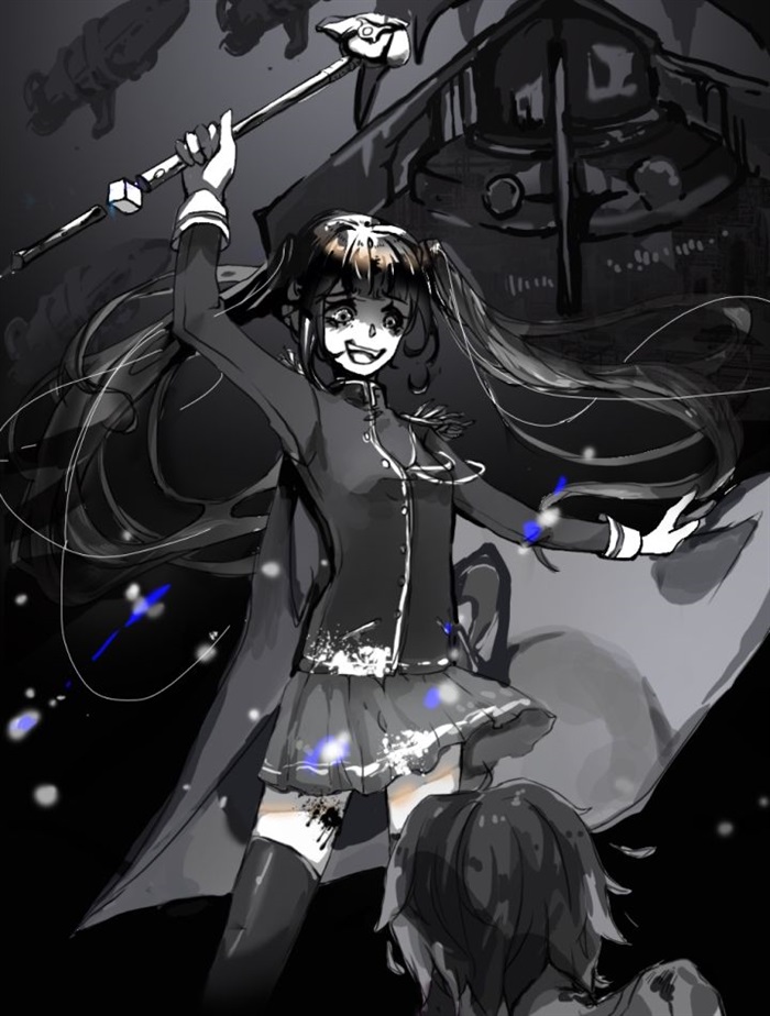“Cochma!(断界权杖)”一段中间像是断掉一般夹着一个魔方一样的东西,顶端镶着巨大的科技结晶的权杖,出现在了双叶的手中。