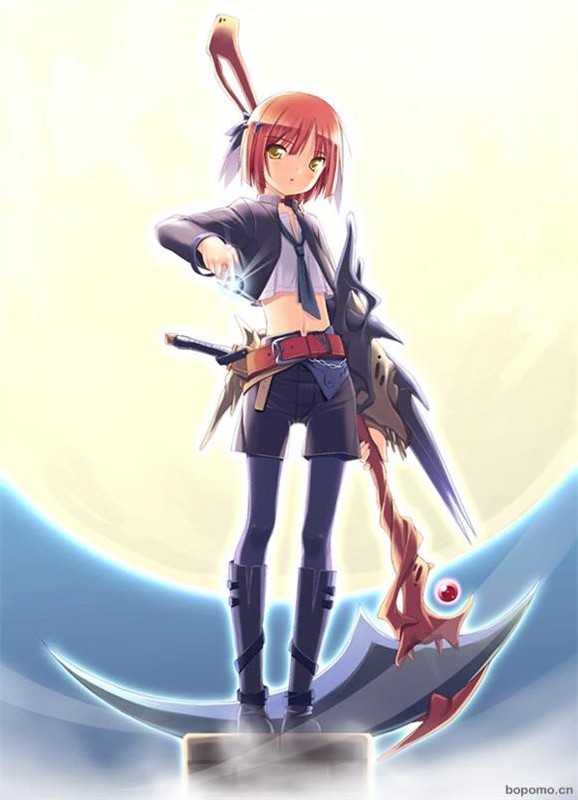 外貌特点:红发金眼(头发在后来放出来的时候剪掉了)