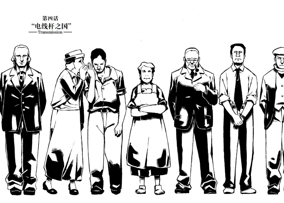 奇诺和汉密斯顺着电线看去,发现前方立着一根上端很尖的高柱子。再往电线的另一头望去,那边也有一根柱子。它的底座是用坚固的石头建造而成,稳稳地立着。