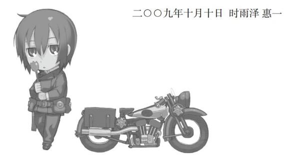 时雨泽:“首先是打从心底感谢购买我作品的各位读者。多亏你们,我才不需要为了过活而找其他工作,也能够集中精神写作,这真的帮了我好大的忙。我也能实际购买资料(只要不是非常昂贵的话)当作参考,毕竟有实品的话描述起来也比较准确。