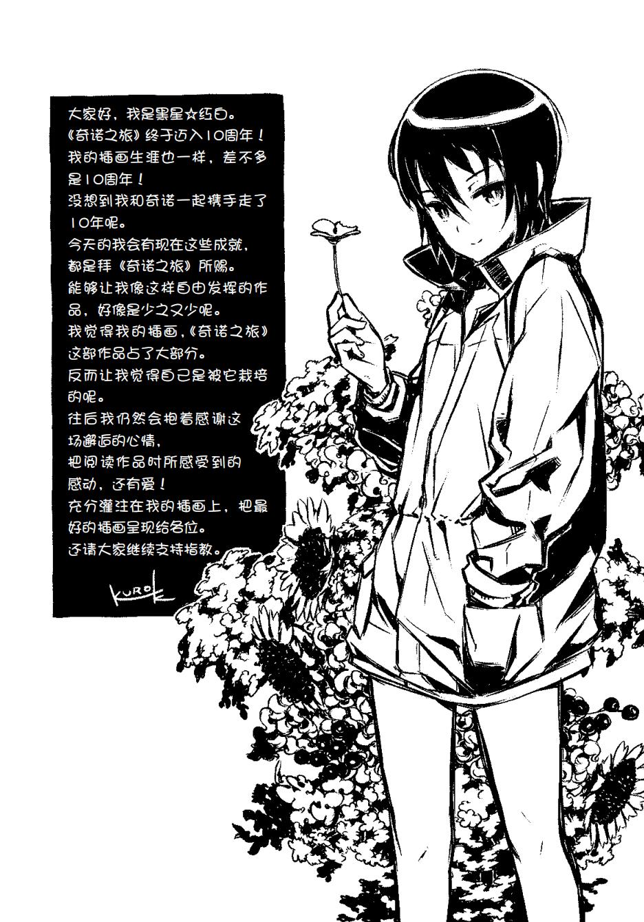 今年是奇诺诞生的十周年。第一集是在二〇〇〇年的七月出版的。当然,那也是我人生中出的第一本书(顺便一提,若连同在“MediaWorks文库”出的书一起算,这是我第三十四本书呢)。