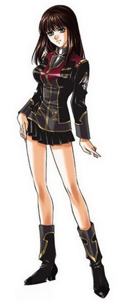 出场描述为长襟白衣,不过此图中她穿的是另一套军服。