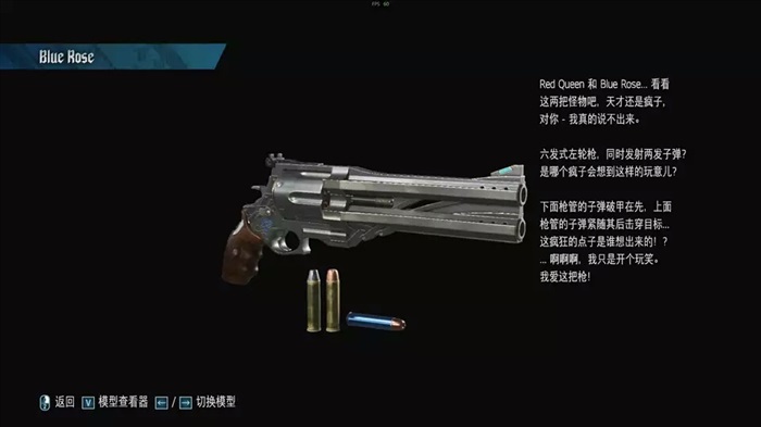 尼禄的湛蓝玫瑰是一把转轮手枪,一次开枪发射两颗子弹,这两颗子弹不是同时射出,是有一点差距的,前面的子弹用来破甲,后面的用来贯彻敌人的身体,枪身由振金打造,子弹是尼禄自身的魔力