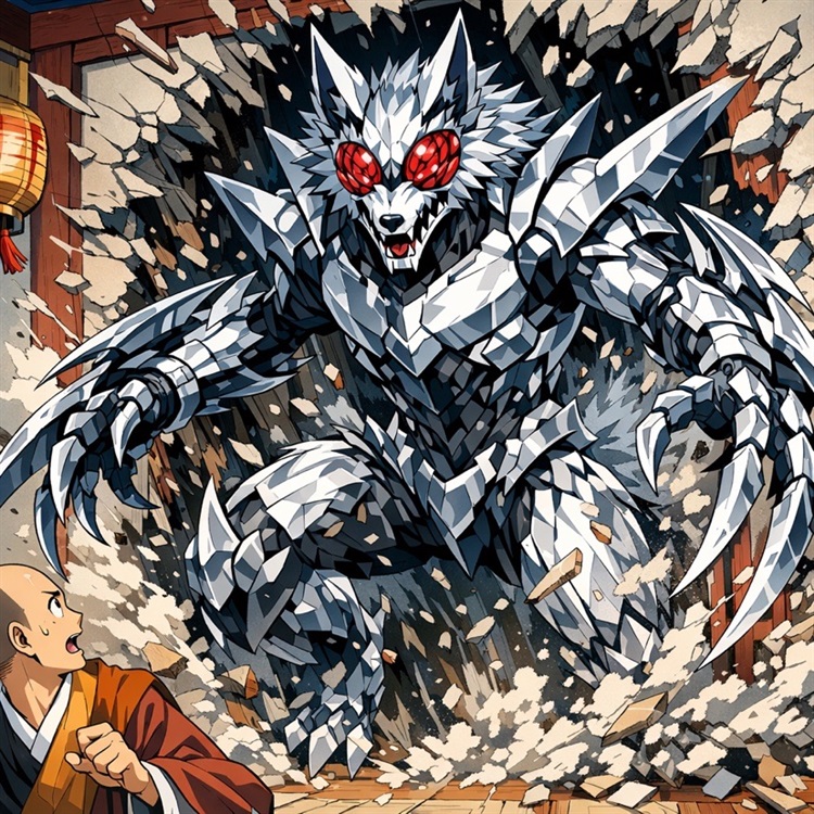 然而,他的佛号尚未落,一道银白色的身影已破墙而入。那是西洲的"猎食者",形似直立的巨狼,却有着昆虫般的复眼和刃片组成的利爪。