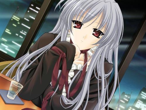 外貌:银色及腰的长发,暗红色的双眸