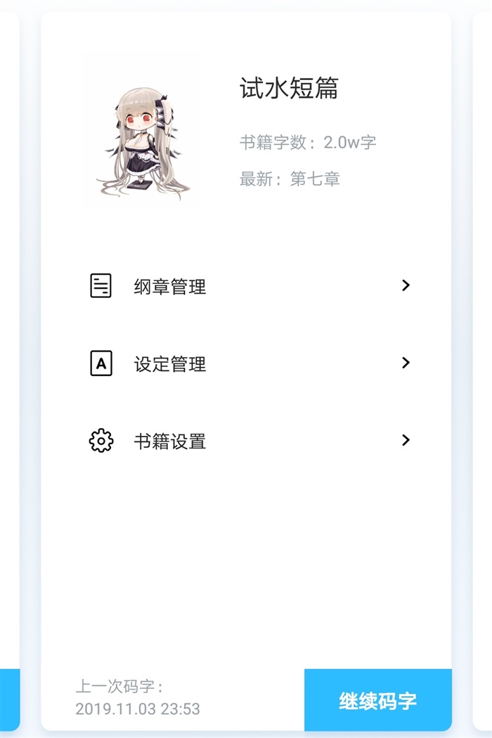 别看我第一本书发得比大纲早,其实在大纲还没写完前我就已经写了一篇两万字的试水短篇。