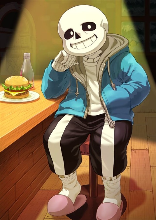 Sans懒散的声音从两人的脑海里响起,此时的Sans已经吃完了汉堡,笑着看着他们,这笑容让人感到一股平易近人的感觉。