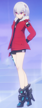 只是不知是采光还是背景对比的问题,她的笑容让我全然没感觉到像她穿着的红色外套与手上的口红那样有温暖的活力。这可能就是常说的冰山美人吧。