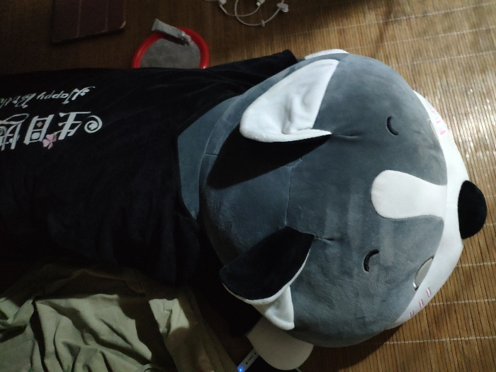 本来是靠着它睡的,回老家之后没有枕头,就拿它当枕头了,都压扁了,嘿嘿。