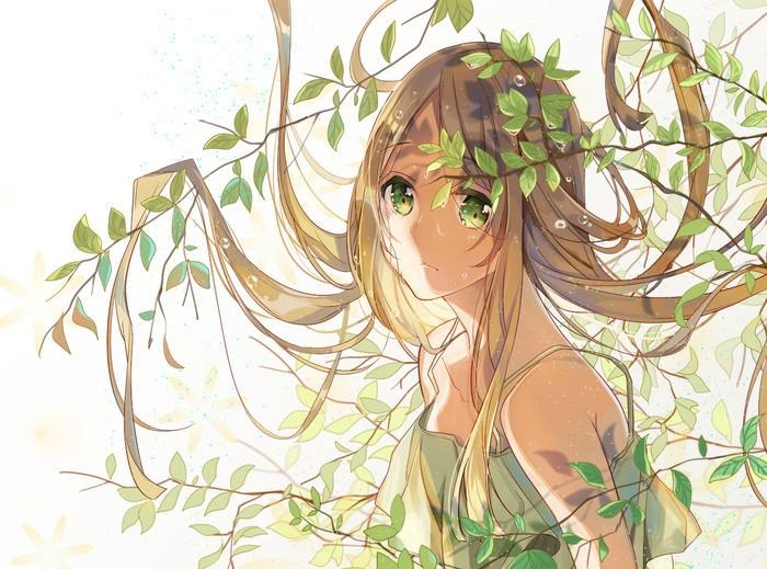 一个淡金色长发的少年(少女?)躺在一片绿色的草地上,微风吹拂着他的头发,少年似乎陷入了沉睡中。