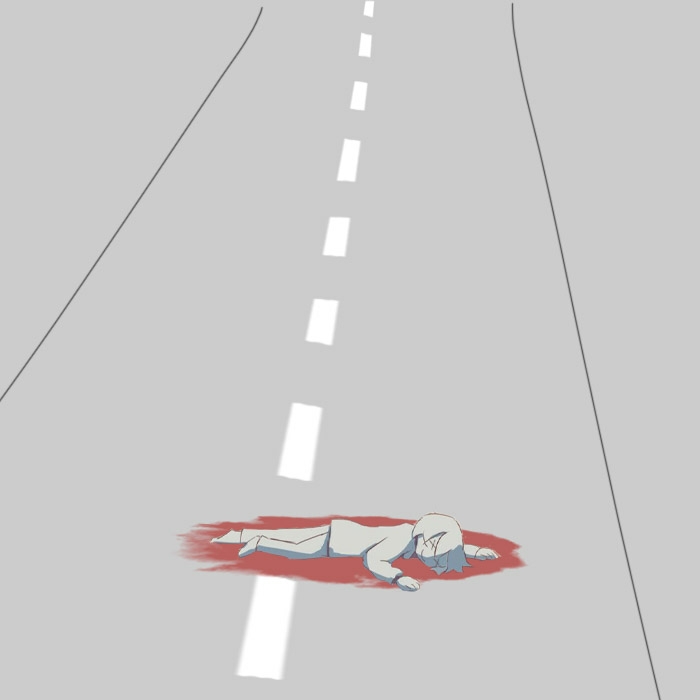 这幅满是灰色的画卷中央,一个灰色的孩子躺倒在地上。