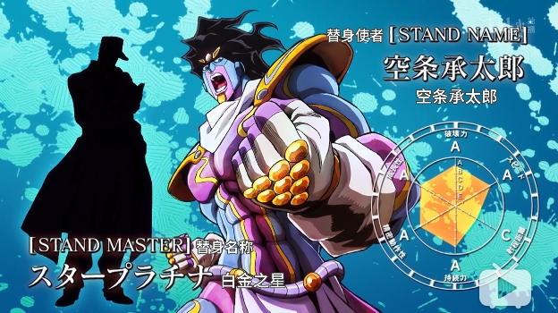 “什~什么(纳尼)?不可能!难道!你是stand(替身)使者?但是为什么,能在停止的时间里……捉住了Star Platinum的手! ”承太郎将牙紧咬住,惊讶道。