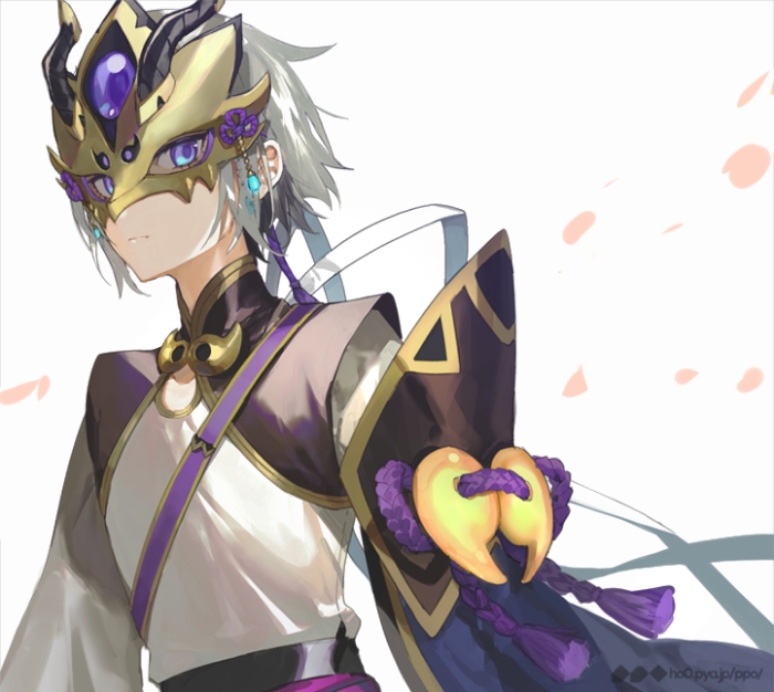 柔顺的紫发,带着兰陵王的面具