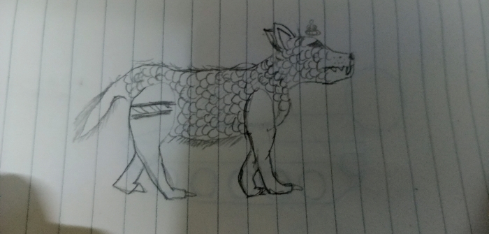 外貌:原本属于狼的毛发变成了鱼鳞一样的东西,并且只有腹部是弱点所在地,头顶有仿佛特斯拉电塔一样的东西,但更多的只是用以互相沟通,制订精密的作战计划。