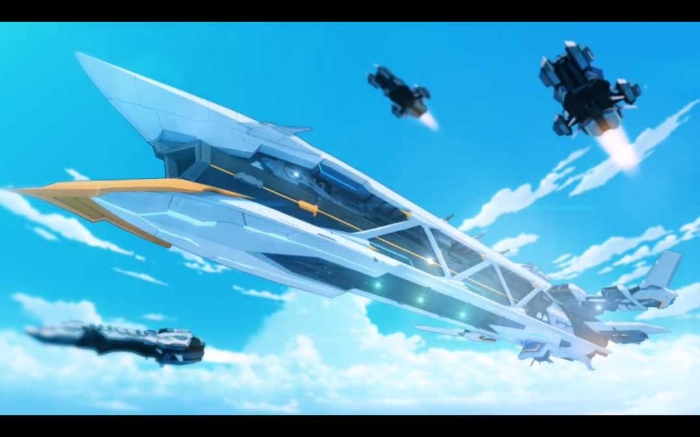 地球外围处,几道闪电突然出现,下一刻,一道空间传送门立刻打开,一艘白色的战舰缓缓从空间门中飞出,周围同时也出现十几台蓝白色的机体,尽职的保卫着战舰,直到战舰安全飞出空间门。