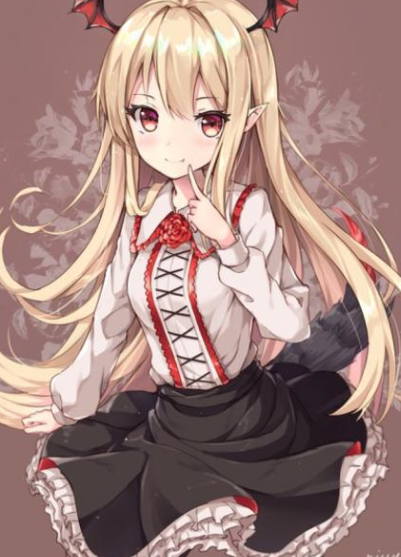月光之下,身穿哥特萝莉式红色长裙的吸血鬼贵族莉儿冷冷地笑着,戴着黑色薄纱手套的手轻轻抚着脸,金色的卷发在空中飘着,一副悠闲玩味的样子,绿色的瞳孔散发出恐怖的光。