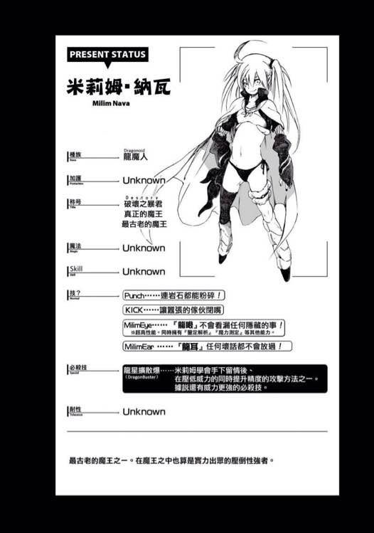 龙之指虎:利姆鲁送给米莉姆的装备,不是为了加强力量而是为了削弱力量而做,赋予了拥有「减速」和「脱力」效果,造成的伤害会降至十分之一,不算武器。