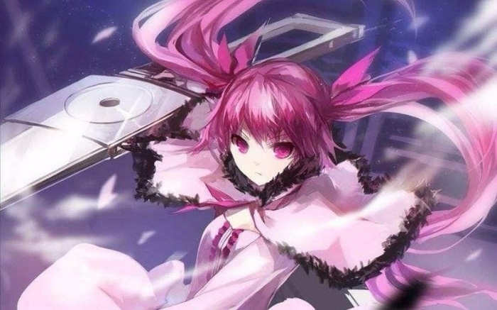 长长的粉色头发,扎着双马尾,拥有粉色的双瞳,平时的服装也是淡粉色的连衣裙。