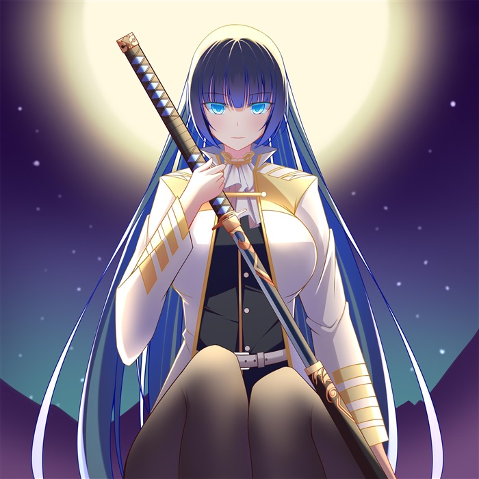 她的“静空”是一柄弧度优美的太刀,那蓝黑相间的刀柄包裹住刀身,使其兼具美观与格调。静空的刃纹呈三本衫状,刃口上似有寒光不停流动,剑身锋利,吹毛可断,显是一把极为难得的绝世好剑。