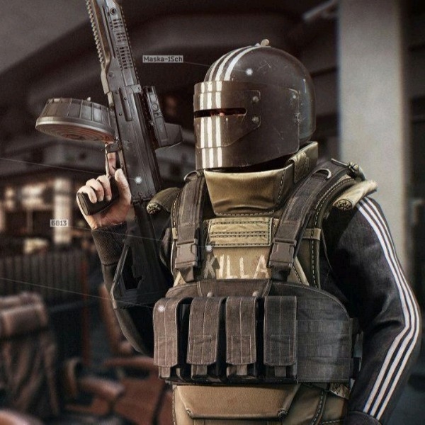(什么?你问我为什么会知道那是把什么枪?看这人穿着一看就是那个史上最硬核的游戏《逃离塔克夫》商场地图的BOSS –––killa 呀!)