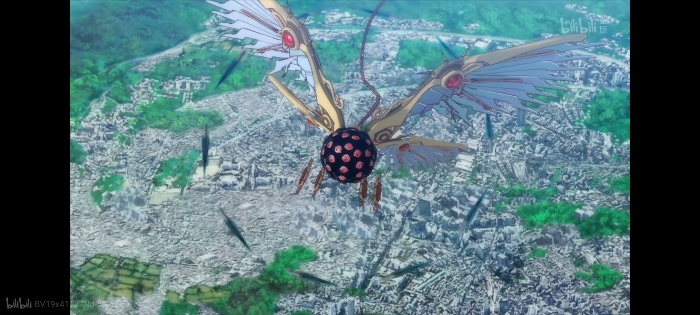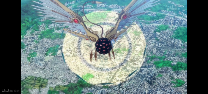 一个以黑色球体为中心、生有天使四翼的巨大飞行物。