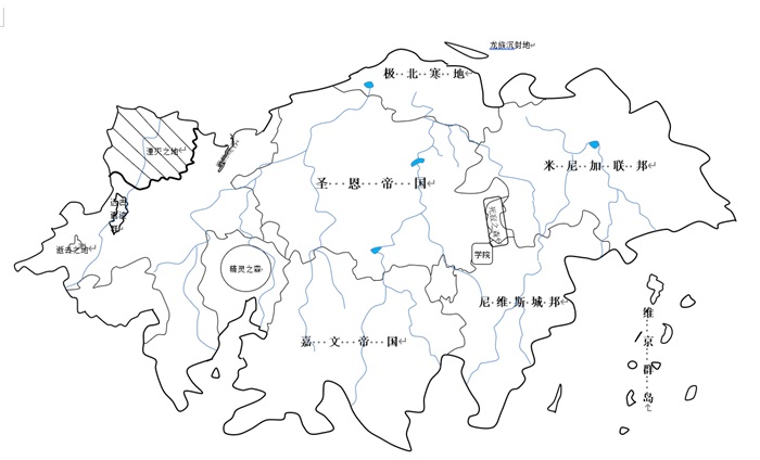 大陆上有4个国家,一个海盗部落。分别是圣恩帝国、嘉文帝国、米尼加联邦、尼维斯城邦,维京部落群岛。大陆存在一些人类无法涉足的地方,要么充斥着混沌毒雾,要么存在众多的魔物。需要提及的一点是,魔物的出现也有不确定性,会散布在大陆各处。