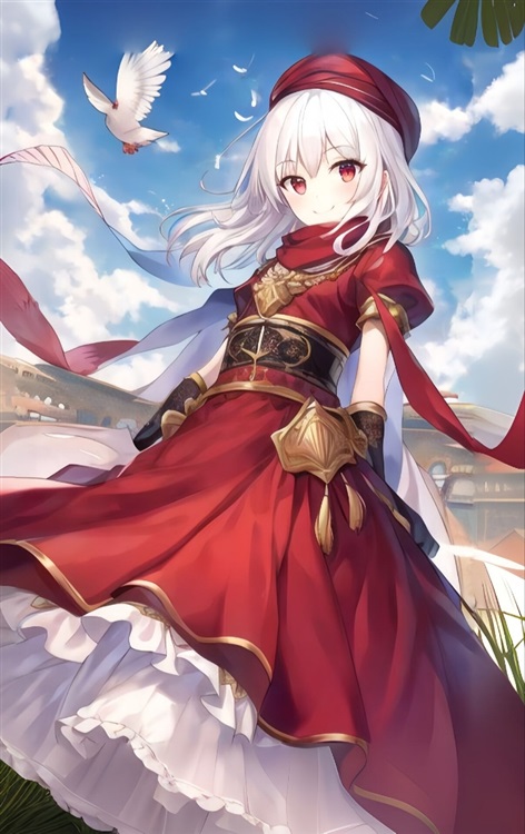 “那是因为我们所有人都实打实的尊敬你呀,包括我也是,能成为你的恋人真的非常幸运”一旁身穿异域风格的红色长裙,戴着红色帽子,有着白色中发和红色双眸的女子搂着影冰说到。