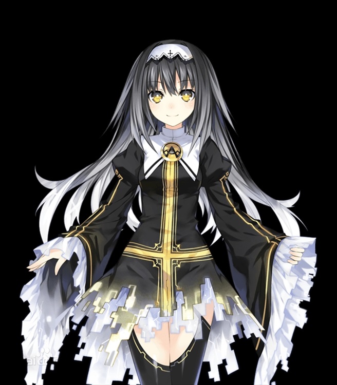 一个黑色长发,金色双瞳,穿着印有大金色倒十字徽纹的黑色基督装的少女悬浮在空中,冰冷地开口说着,像是自言自语。
