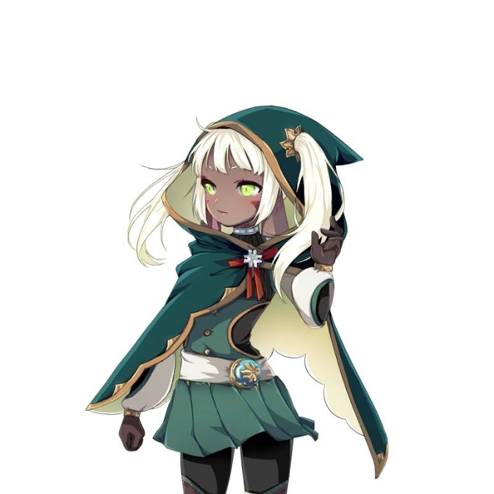 那是一个扎着双马尾的女孩,穿着是黑色的上衣配深绿色的迷你裙。虽然她脸被黑色的披肩帽遮住没能看清,但跟着白发隐约露出来的耳朵露娜就能知道,她也是一个神族。