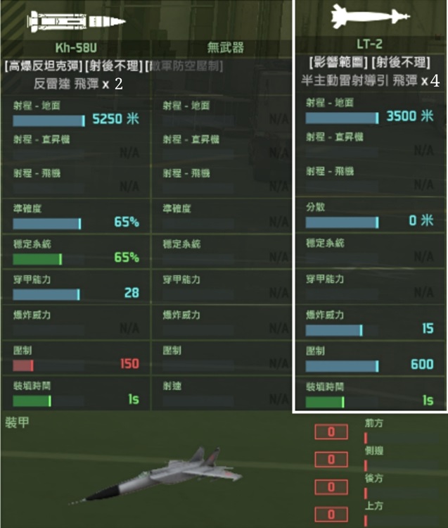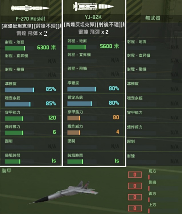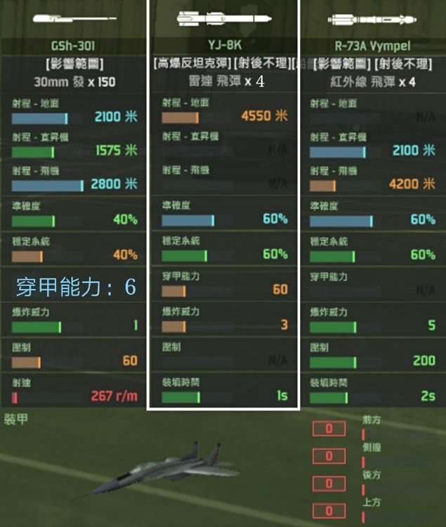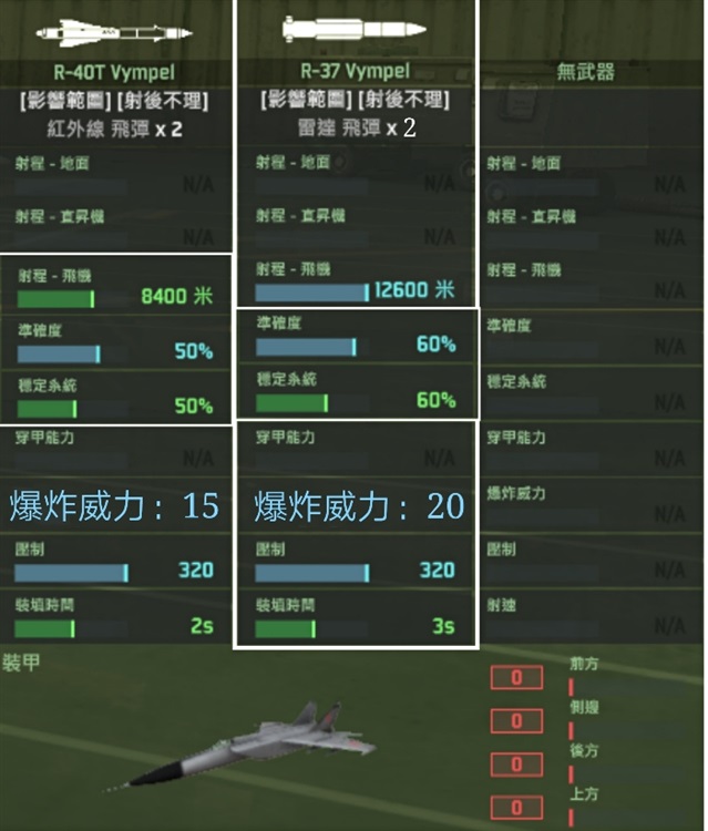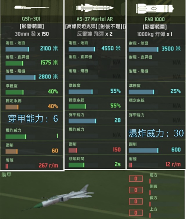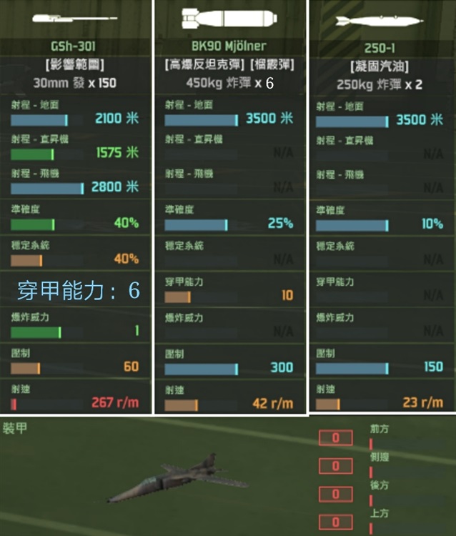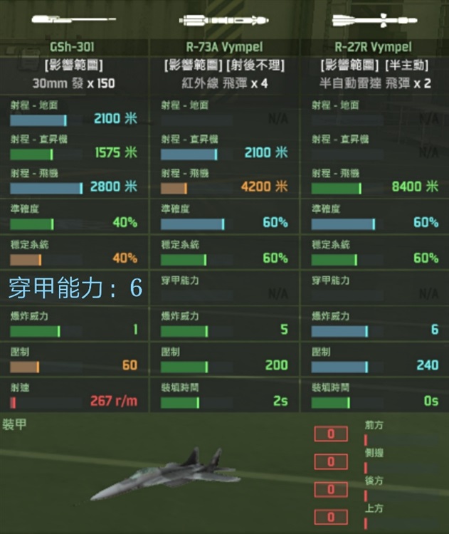 emm这款飞机的狗斗性能真的是……算了!你们就当他不存在吧!从武装配置上就能看出来,这飞机根本就不是拿来狗斗的!这么大的飞机竟然只有四个挂载位,这可真是呵呵呵呵呵了