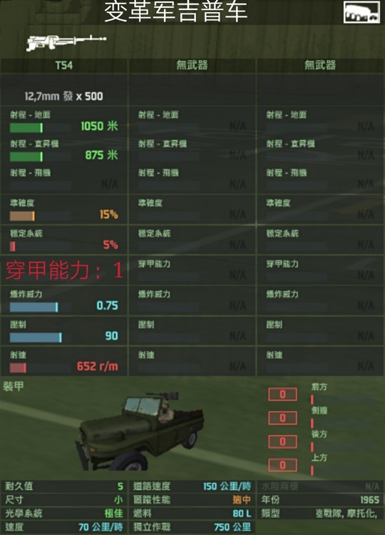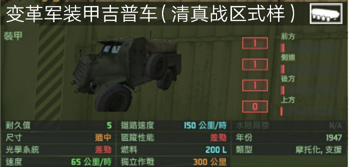 特殊能力:吉普车搭载数量+1,兵员额外搭载数量+5