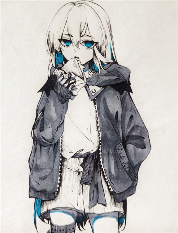 白透粉似名贵花朵一样娇嫩的皮肤,到腰的长发,m型的长刘海,蓝色结晶一样和琥珀般的眼睛在阳光下发光,完美无瑕跟定做人偶一样完美的容貌。唯一可惜的就是那宽松的过分暴露出肩头,大腿的超大号t恤衫不免让人感觉有些邋遢。