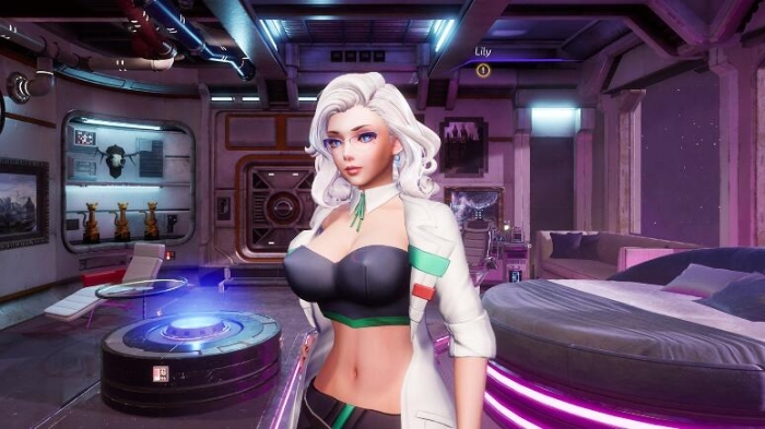 莉莉大约有一米七,拥有着一头泛着淡紫的齐肩卷发;精致的鹅蛋脸上一朵丰满的双唇;戴一副黑框眼镜却遮不住的光彩夺目的湛蓝色眼睛;皮肤亮白细腻;宽大的研究服也无法遮盖傲人的身材;而且。。。。。