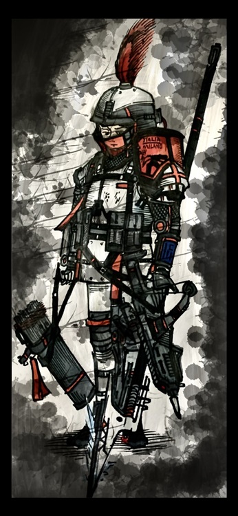 混乱的城邦雇佣兵制度带来的是国家正规军的颓势,陈腐的战争观念和落后的单兵武装注定了意大利军队的举步维艰。意大利政府采购中心在降低了成本和舒适度后,选中了这款由米兰方面提供的单兵板甲。保留MC原生铁甲的大型甲片和棱角分明的切割痕,在战术方面则尽可能的保留了MC原版作战方式的思路,这使得训练过程更加简单而贴近实际战斗。配合先进的弩箭技术,意大利军队虽然无法重构罗马帝国在MC文明数据结合初期的荣光,但至少不至于丧权辱国。