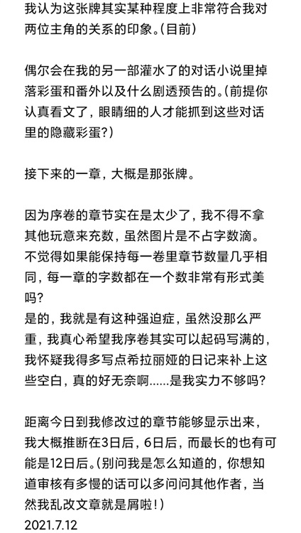 我认为这是自嗨产物,本来能看下去的人就少,所以我不要求什么,我并不是以赚钱以及人气高不高,收藏数多不多来衡量这本小说对我的价值的,只要有人看,然后能从中感受到乐趣就行了。