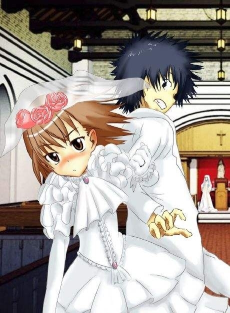 随着《圣母颂》的调子,穿着洁白的西服的上条当麻和白色婚纱的御坂美琴走上了台。