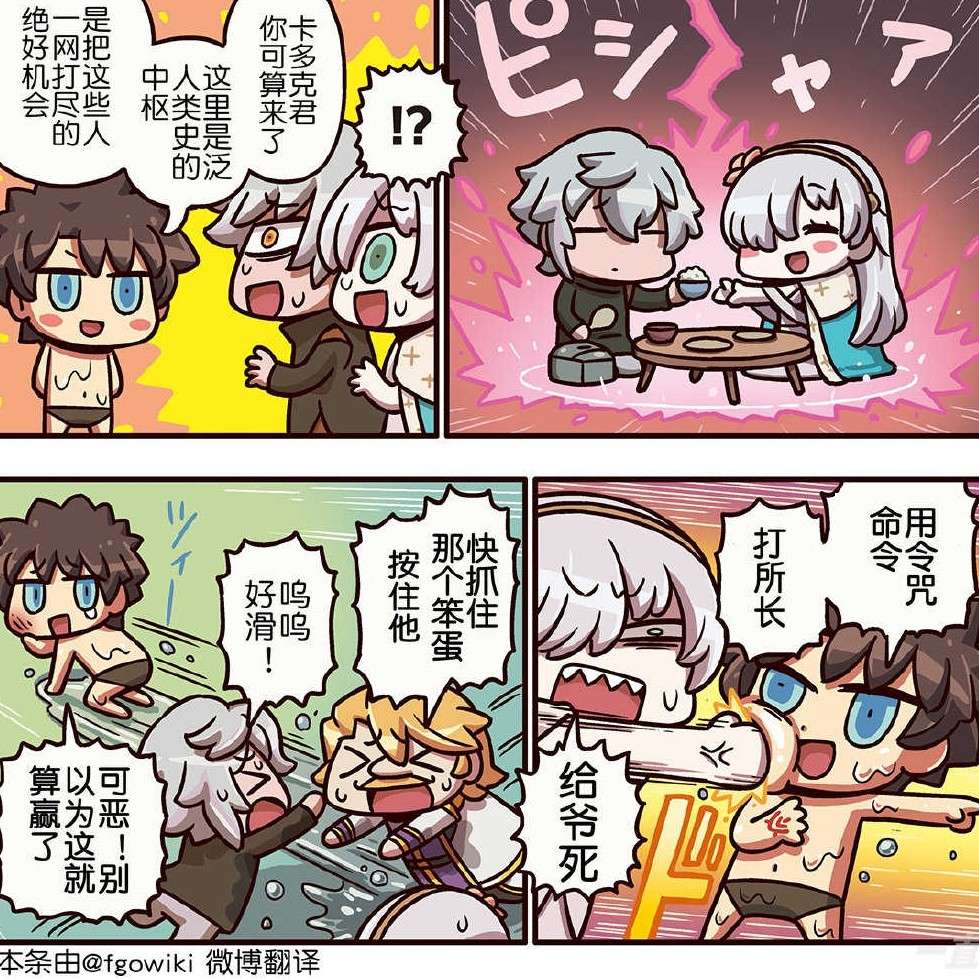 夜晚. 洁白的月亮悬挂在天空中,皎洁的月光如同一层轻薄的银纱般,披洒在卫宫家的屋檐上。 现在已经是半夜10点多钟了,是大部分的人们都该熄灯入睡的时间。 但是,就在这一片已经陷入寂静与黑暗的住宅区中,还有一家在灯火通明着,并且还时不时的传出热闹喧器的声音。 比如,有时会是一些铁器碰撞的脆鸣声,有时会是一些鼓掌叫好的喧闹声,有时甚至会是一些气急败坏的怒骂声。 呵呵,真是一场相当热闹的聚会啊。 而现在,聚会依旧还在持续着。 环坐在这个道场中的诸位英灵们,肆意的喝着酒聊着天,毫无顾忌的与本来应是敌人的...……