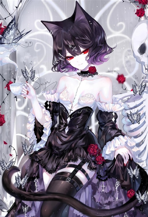 原本135的小萝莉变成了165的猫耳少女!仔细一看黑色秀靓的短发,血红色的双眼带着几分妩媚与危险怎么说呢?反叛少女!!!