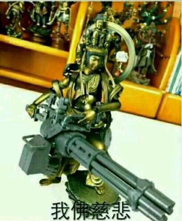 青色史莱姆刚落到石像背上,还不到青色光芒亮起石像就淡淡的举起了一挺六管重机枪。