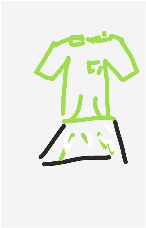 店长将衣物抖开,这是一件主色调为绿色的无帽卫衣和白色短裙,卫衣上有三个口袋,左胸的位置有一处,还有两个用来揣手手的兜兜。