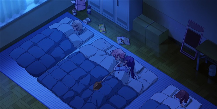 夜晚的月光透过窗户照进被她们打了地铺的「卧室」,胡桃身边的三个少女都睡熟了。
