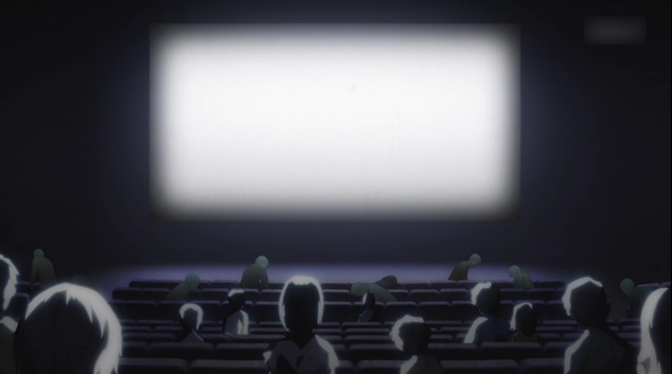 由纪她们终于走上前往顶层的楼梯,番剧在这里给了一个拍向墙的镜头,能看见只有三个人的影子,这大概就是明示了吧。