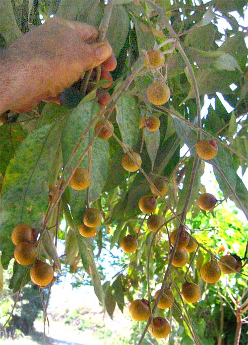 无患子有许多名字,在本草纲木里被称为木患子,也有洗手果,油果子的别名。它的果皮含有皂素,其效果绝对比草木灰溶液要更好。