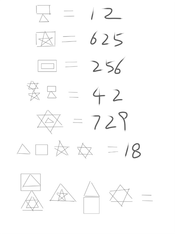 石板上的每一组图案都代表一种数学运算关系,一共有六道提示关系式,需推算单独个体与图案位置排列等关系,才能解决迷题。